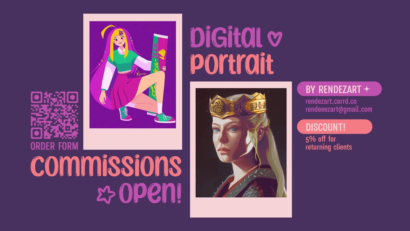 The commissioned piece is intended for personal use only, and must not be used for commercial purposes. This includes restrictions on reselling or using the commissioned work as merchandise. Additionally, clients are prohibited from altering, tracing, or claiming the commissioned piece as their own work.